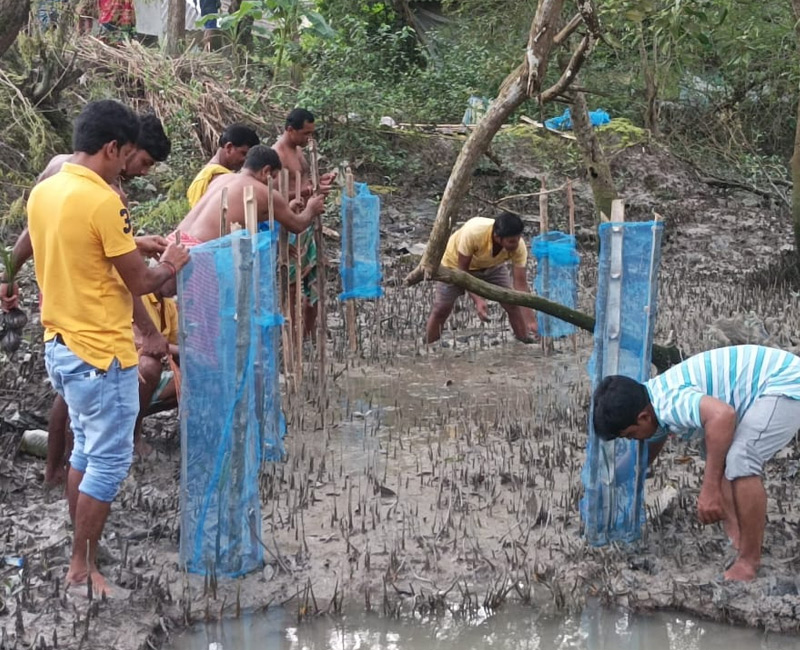 Restore mangrove embankments around the islands, and equip the community for their preservation, by linking livelihood opportunities with the replenishments and utilization of the natural biodiversity of the Sundarbans and providing an improved quality of education and healthcare for the community.